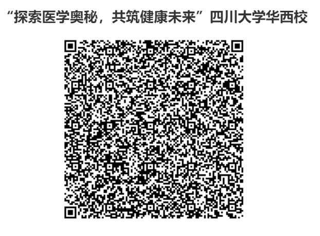 1、学员可登录四川大学教育培训部官方网站(https://ccet.scu.edu.cn/#/door),点击“培训项目”→“探索医学奥秘,共筑健康未来”四川大学华西校区研学营填写个人信息,提交报名申请。或者扫描下方二维码报名。