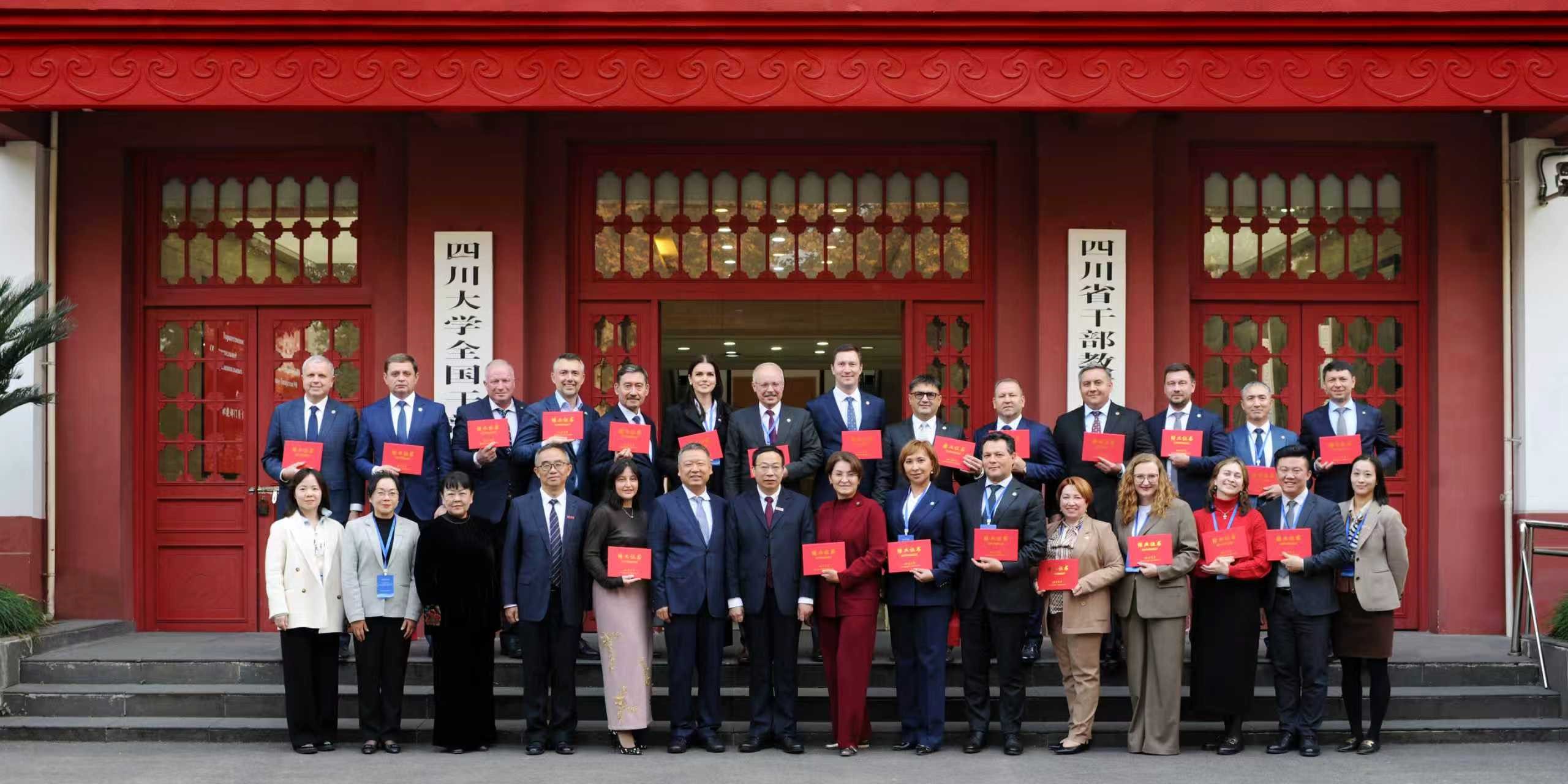 11月28日,由四川省外事办公室主办,四川大学协办的俄罗斯鞑靼斯坦共和国职能部门负责人及地方行政长官培训团结业典礼在四川大学望江校区隆重举行。为期五天的培训圆满结束,23名来自俄罗斯鞑靼斯坦共和国的职能部门负责人和地方行政长官顺利获得结业证书。本次培训旨在深化中俄双方在地方治理与高等教育领域的经验互鉴与合作。俄罗斯鞑靼斯坦共和国副总理法兹列耶娃、四川大学副校长游劲松教授出席结业典礼并致辞,四川省外事办公室二级巡视员胡戈出席典礼。