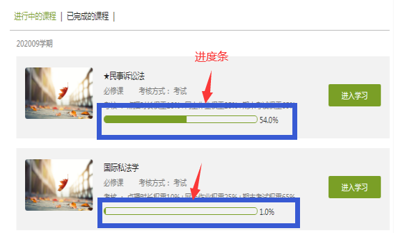2.图中进度条为视频课件观看、学习进度条,与学生作业完成情况并无关联。