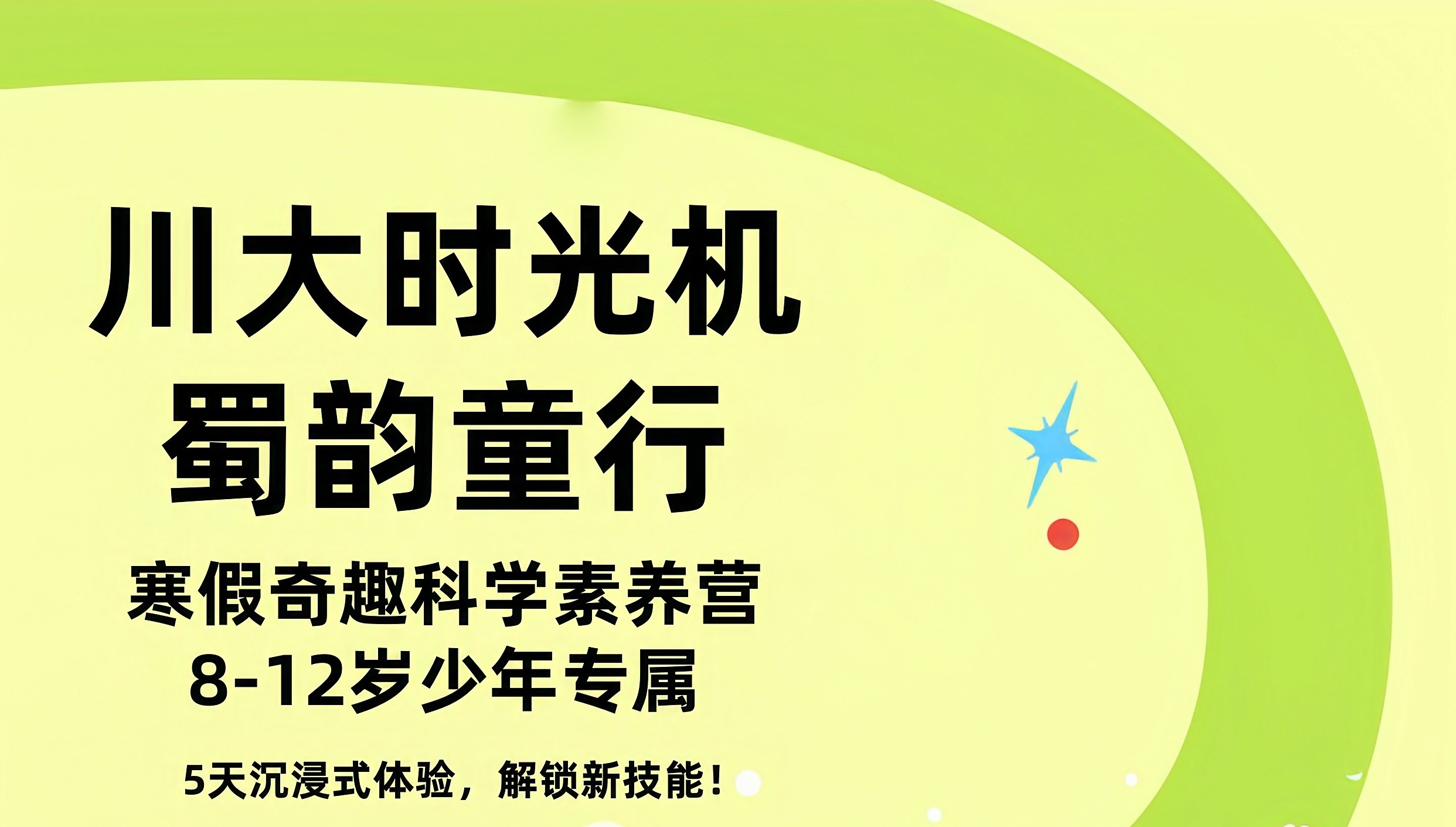 一、项目背景当三星堆的青铜神树遇上实验室的科学奥秘,当百年川大的人文底蕴碰撞青少年的探索热情,一场跨时空的研学奇遇就此启程。四川大学教育培训部深挖校园文化基因与博物馆巴蜀文化宝藏,打造“文博溯源+科学实践”的创新研学模式。我们希望带领8-12岁青少年搭乘“川大时光机”,既能在三星堆文明中触摸历史温度,又能在趣味实践与团队运动协作中点燃科学好奇心,让这个寒假成为兼具文化底蕴与成长活力的独特旅程。二、项...