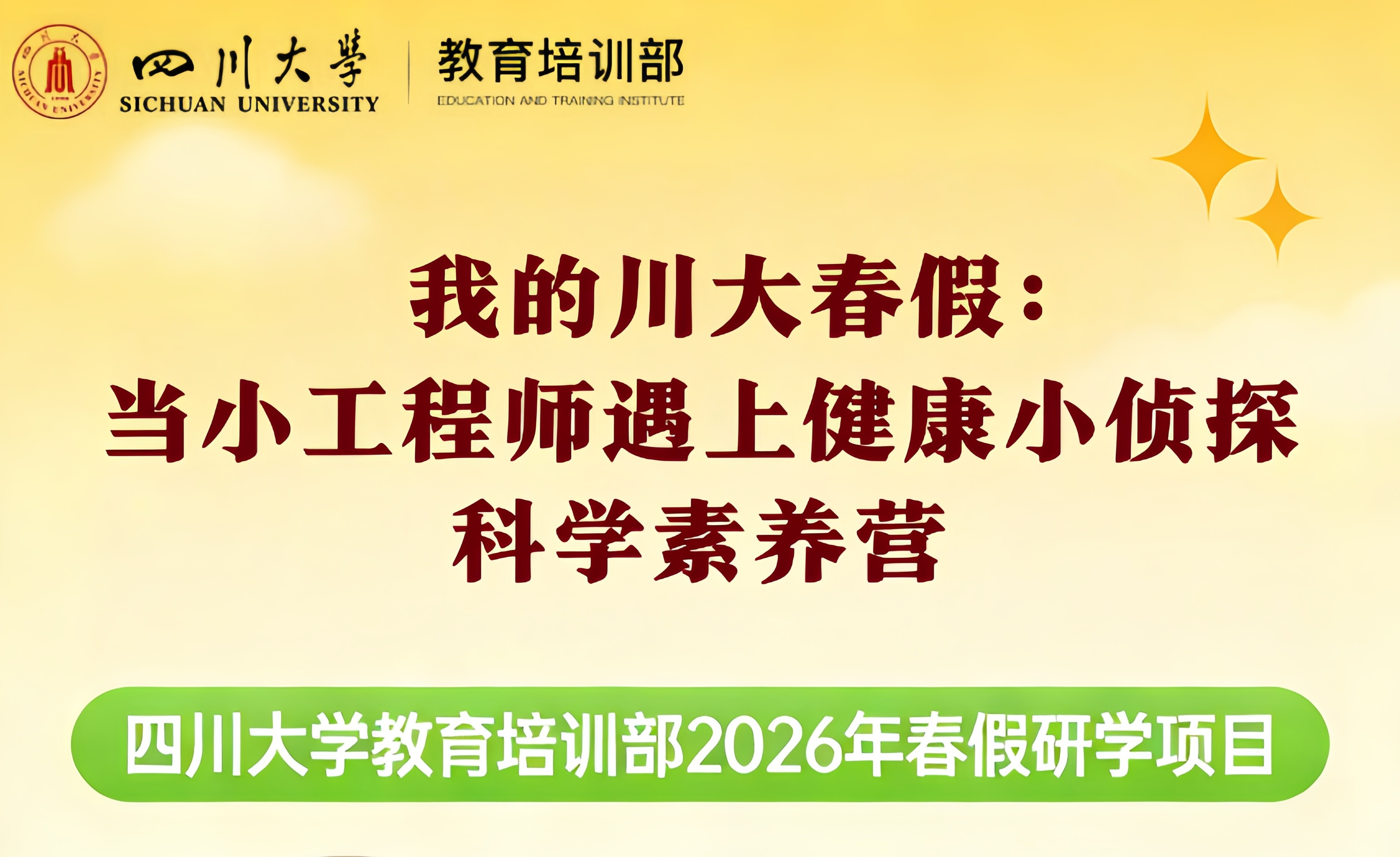 一、项目背景当博物馆的青铜神树对话运动场上的汗水,当3D打印的机械臂遇见消化系统的奥秘—这个春假,四川大学教育培训部研学团队再度启航,打造“人文+科技+健康+运动”四位一体的沉浸式成长营。我们以“一日一主题”的方式,带领6-12岁孩子在三天时间里,不再是“坐在教室里听讲座”,而是真正走进川大的实验室、博物馆、运动场,让大学校园成为孩子的“第二课堂”,让知识从课本中走出来,成为可以触摸、可以创造、可以奔...
